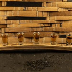 Home > Barrel Stave Flight – Handcrafted Bourbon Barrel Serve Tray & Shot Glass Set (5-Shot)