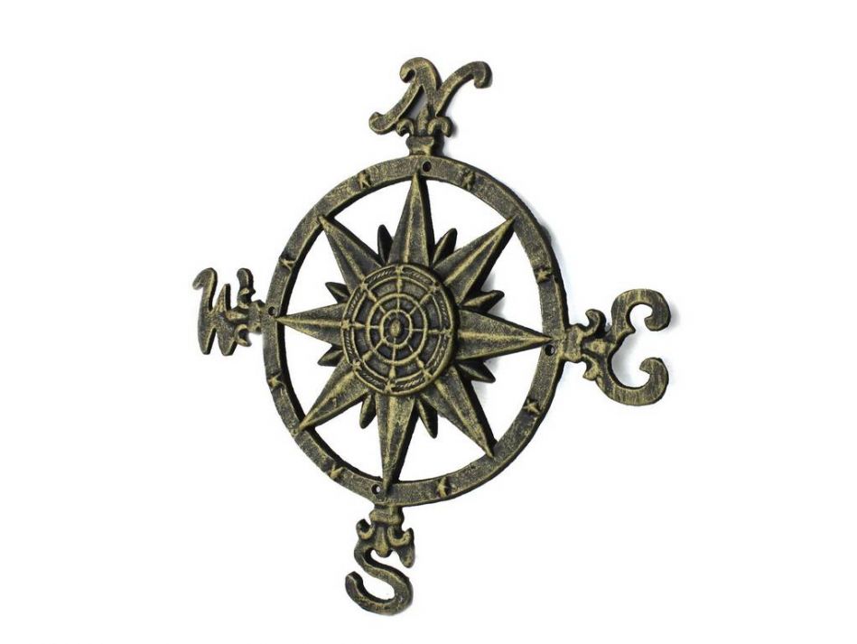 🧭 Navigate in Style! Add timeless nautical charm to your home with our 19" Antique Gold Cast Iron Compass. Featuring a classic nautical star and clearly marked directions, this wall accent is perfect for sea lovers and home décor enthusiasts alike. Mount it easily and choose from Antique Gold, Antique Silver, Seaworn Bronze, or Rustic Seaworn Blue finishes to match any space! âš“