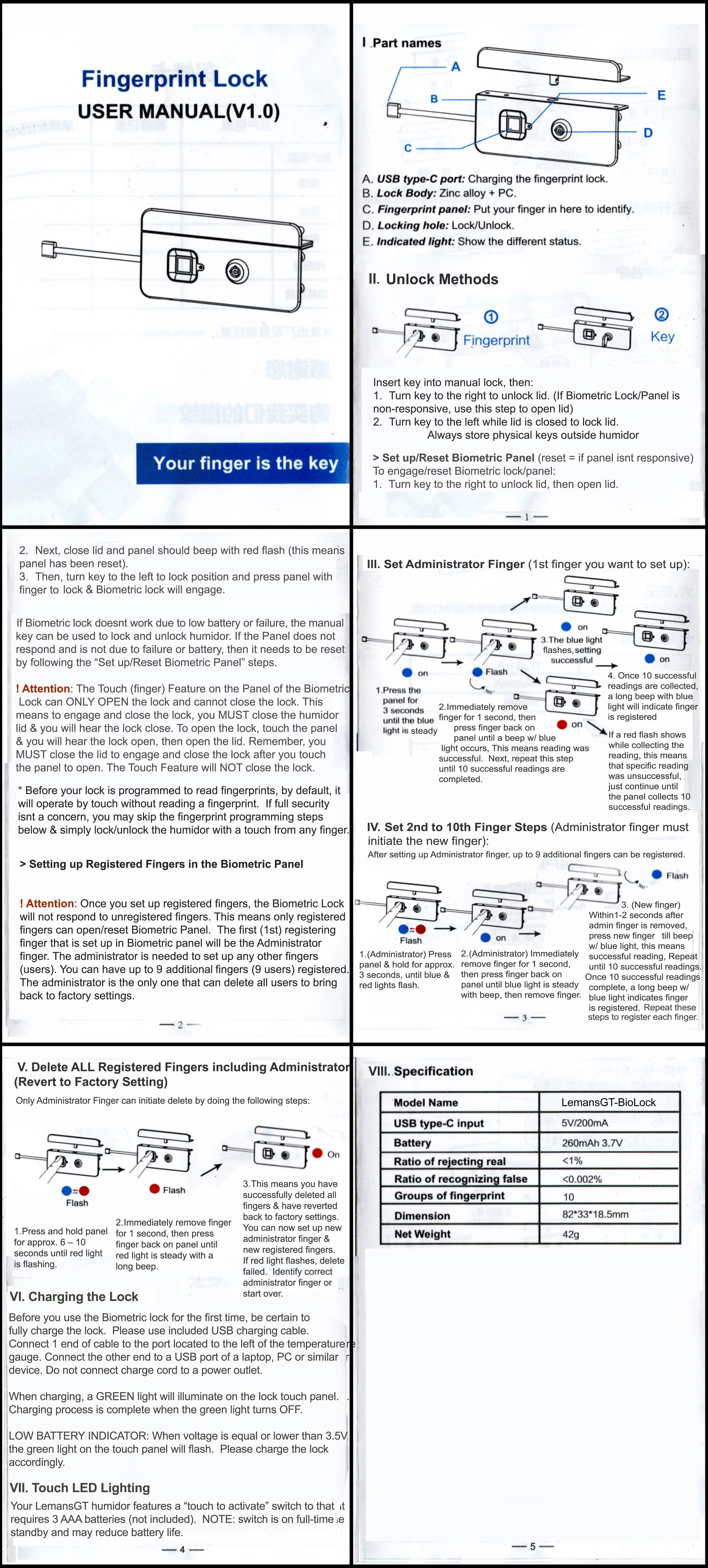 • Biometric Security: Unlock with a fingerprint sensor (store up to 10 fingerprints) or use included backup keys. USB rechargeable for hassle-free use.