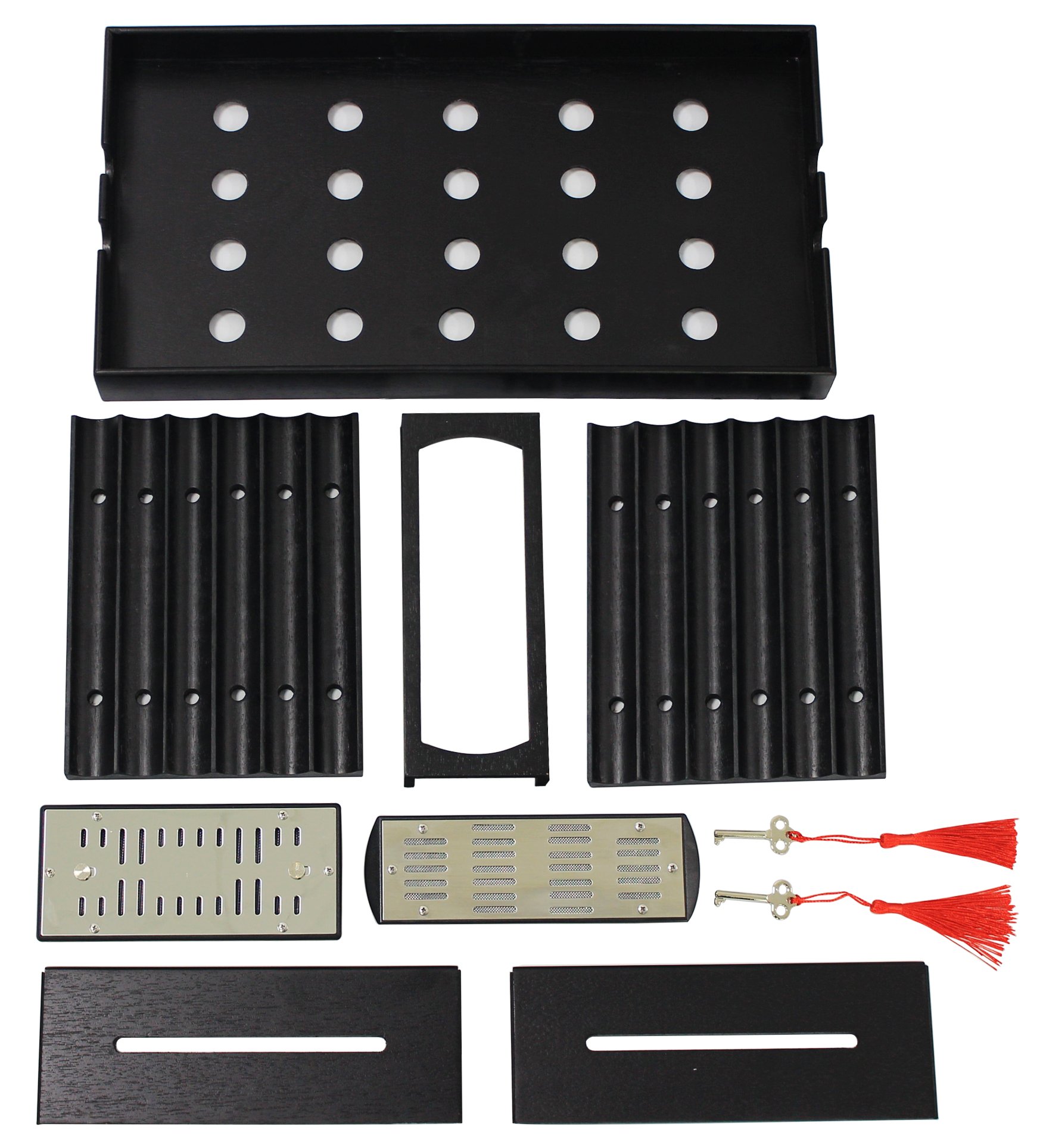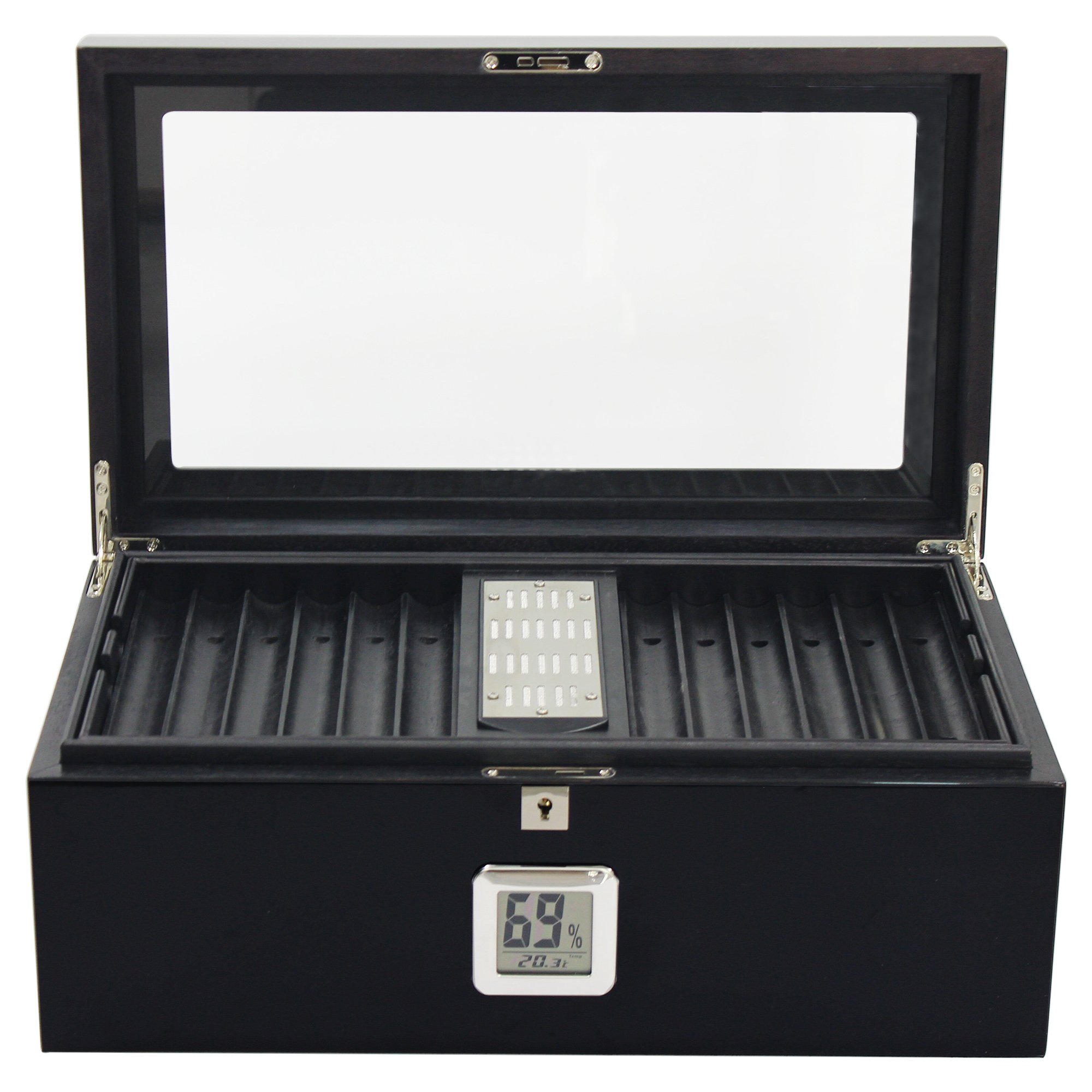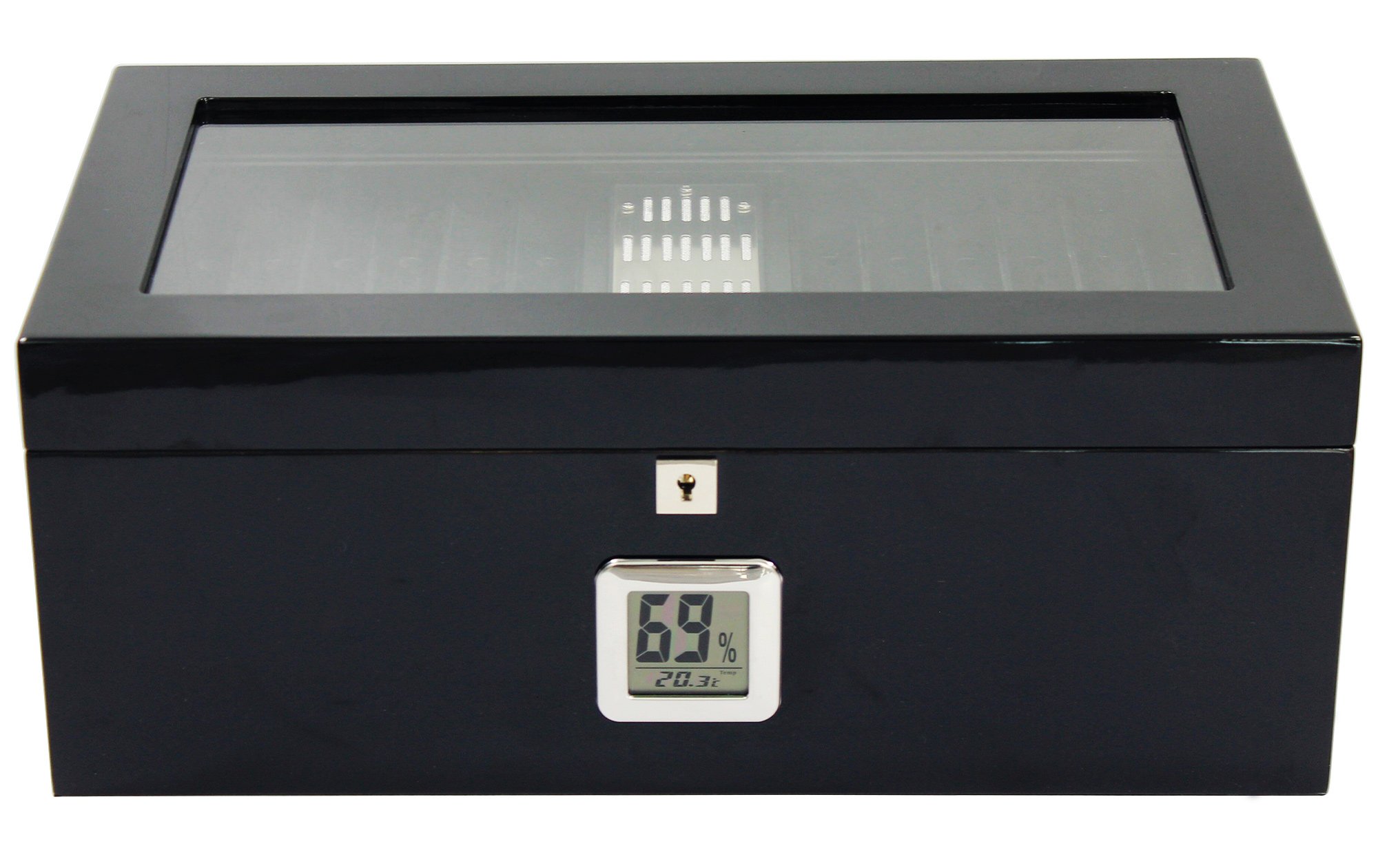 Maintain perfect humidity with the digital hygrometer with calibration and dual humidifiers for even moisture control. Internal locking hinges, side handles, and classic lock & key provide security without compromising style.