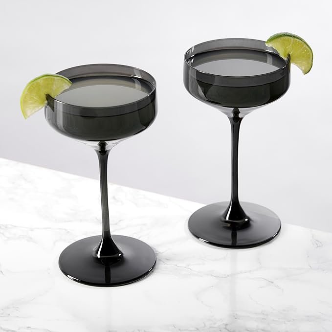 Elevate every cocktail with the Reserve Nouveau Crystal Coupes by Viski, where craftsmanship meets drama. Available in amber or smoke crystal, these stemmed glasses add warmth and sophistication to any bar, turning every pour into a moment to savor.