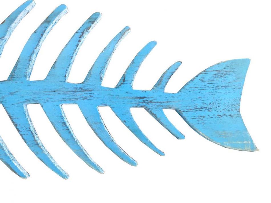 Our Wooden Rustic Dark Blue Fishbone Wall Mounted Decoration 25" is a an instant conversation starter when put on display in your beach theme home. Perfect for those who have an affinity for sea life or those who love fish decor, this fish decoration can be displayed prominently on a wall or can lean right up against a wall as an accent piece. Give this as a beach theme gift to a loved one and choose between a variety of colors.