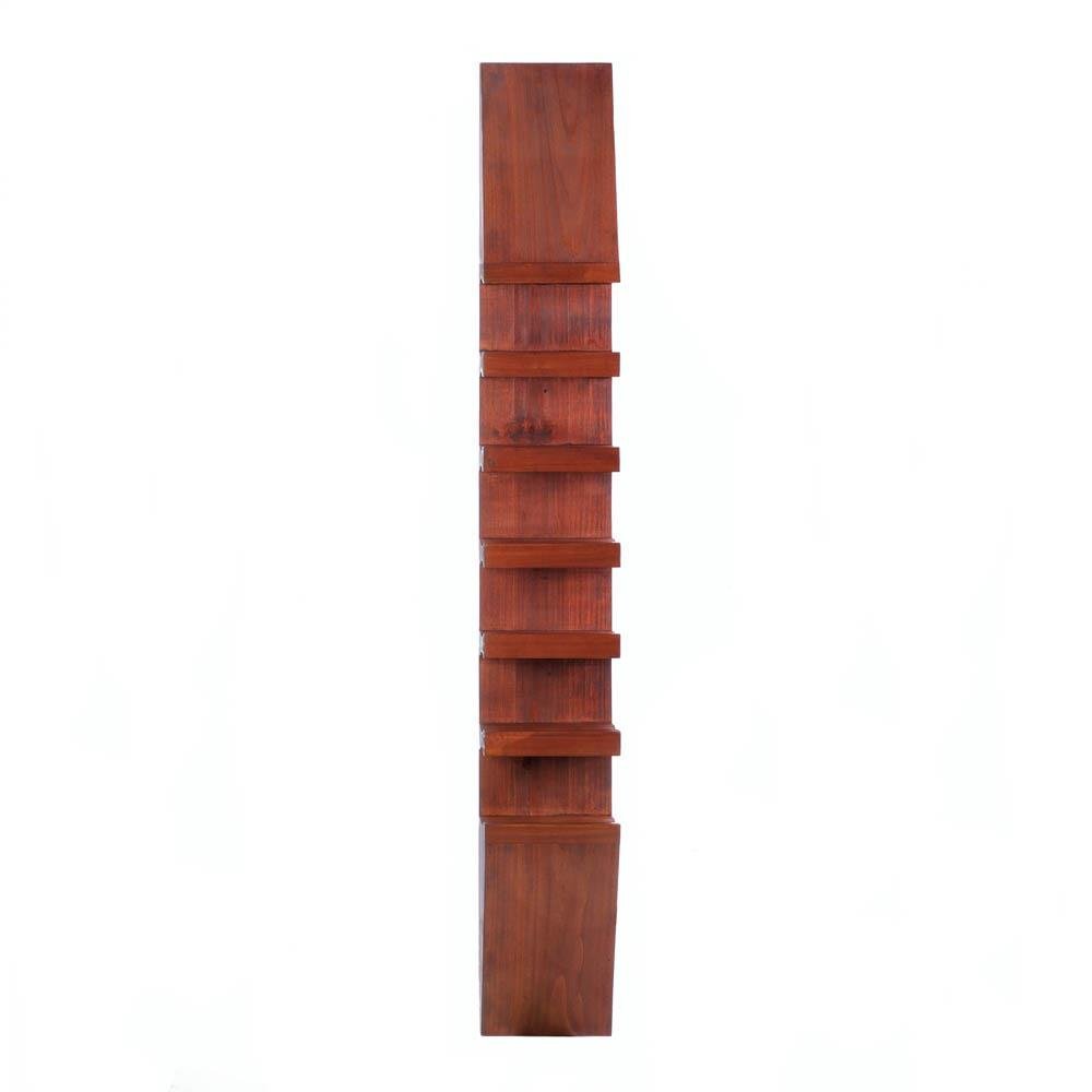 • Turn your wine bottle collection into contemporary art with this sleek wooden wall-mounted rack. It has space for six of your favorite bottles of wine.