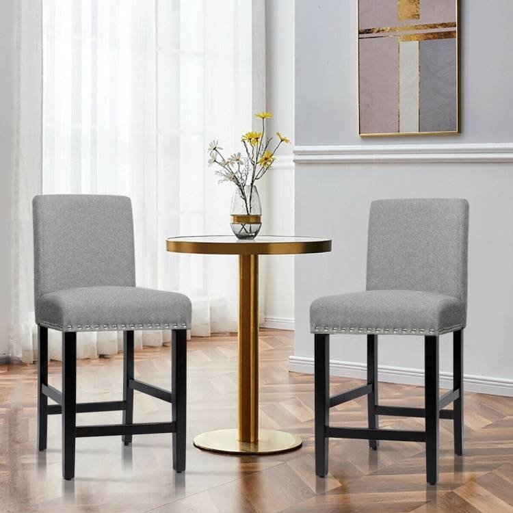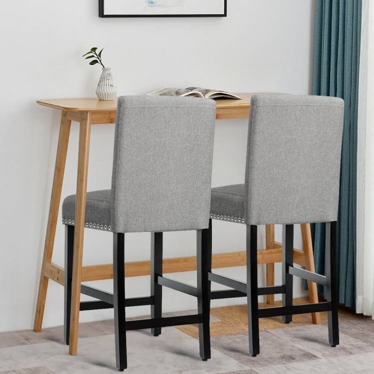 Upgrade your kitchen island, dining room, or home bar with this set of two modern barstools. They are designed for both comfort and style, with a soft cushion and breathable linen fabric for a pleasant seating experience. The interior spring and ergonomic curved backrest provide added resilience and support, while the wide seat accommodates various body types.