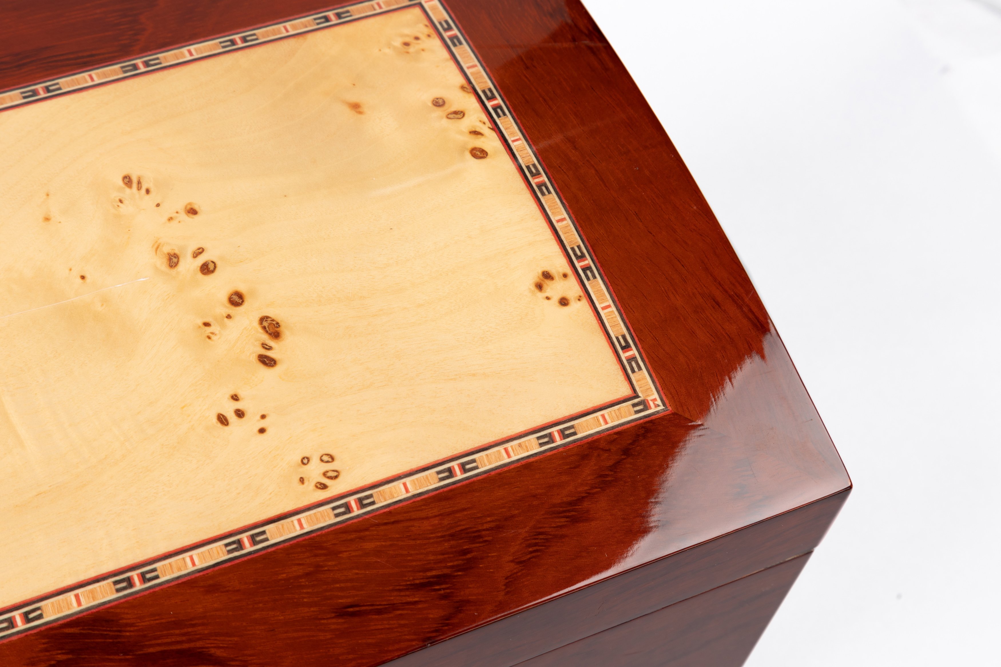 • Elegant Design: Light Birdseye Mappa wood inlay and arched lid with hand-rubbed lacquer finish exude upscale sophistication.