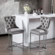 Modern Velvet Bar Stool with High Tufted Back & Chrome Base - Nailhead Detail