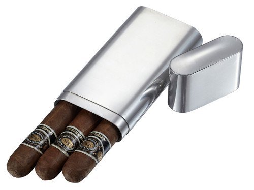 Elegant Stainless Steel Cigar Case – Holds 3 Cigars