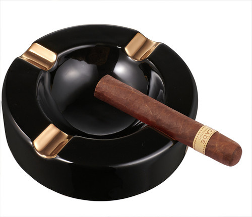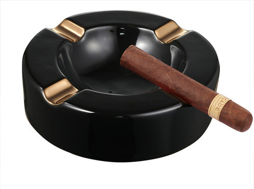 Visol Midas Black & Gold Round Ceramic Cigar Ashtray – VASH438