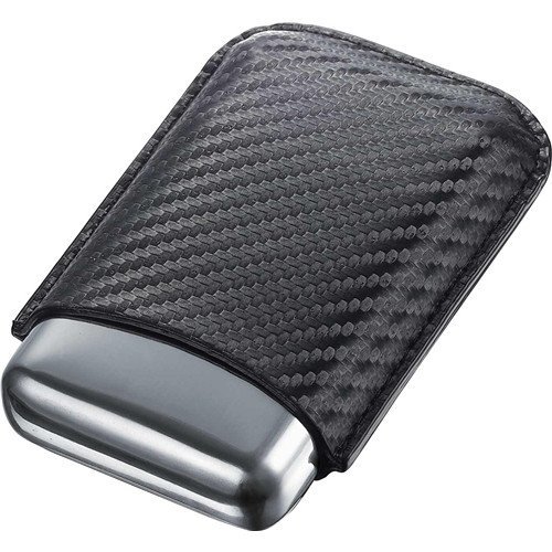Protect and carry up to three cigars (42 ring gauge) in this stylish stainless steel and faux carbon fiber cigar case. Lightweight and durable, it’s perfect for travel, home, or gifting. Sleek design with premium construction makes it a must-have accessory for cigar enthusiasts.