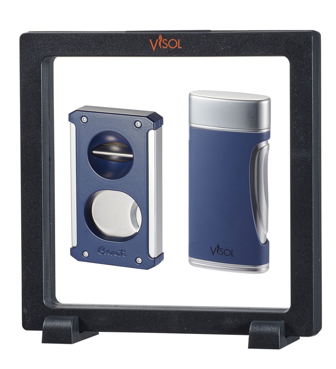Gift this amazing duo for a special person this holiday! This gift set features a Caseti Trident 3-in-1 cigar cutter and the Visol DuoMatt cigar lighter in a visual display box set.