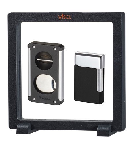 Gift this amazing duo for a special person this holiday! This gift set features a Caseti Trident 3-in-1 cigar cutter and the Visol Pyxis cigar lighter in a visual display box set.